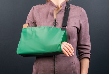 Может быть использована для фиксации шин или для фиксации руки при переломах, ушибах и растяжениях. Повязка выполнена из синтетической водоотталкивающей ткани ПВХ в виде сумки - «конверта» c плечевым ремнем, регулируемым под разный рост пациента. Регулировка ремня по высоте происходит с помощью специальной пряжки, которая закрепляет повязку в нужном положении.