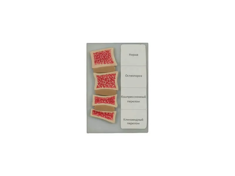 Модель предназначена для изучения процессов, протекающих в межпозвонковых дисках при их дегенеративных изменениях. Модель не разборная, на подставке.