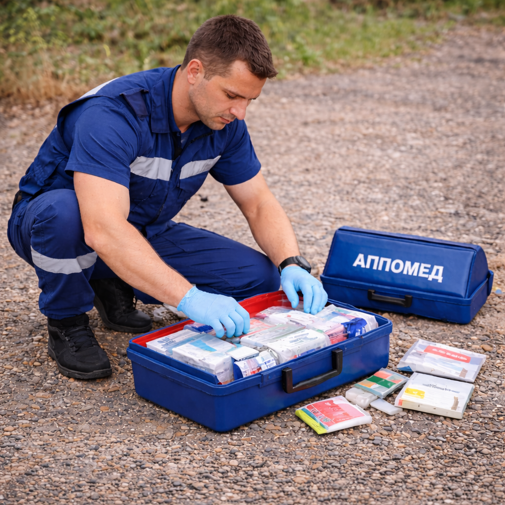 Комплект используется при травмах, внезапных ухудшениях самочувствия и других неотложных состояниях до прибытия медицинских специалистов.