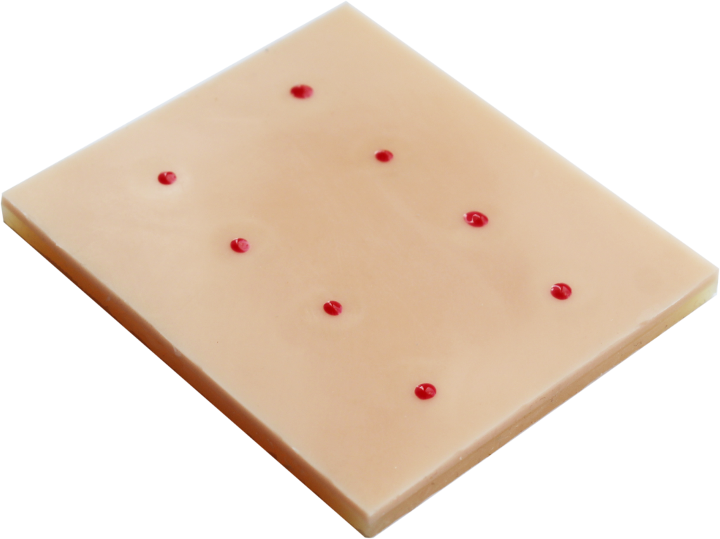 Тренажер представляет собой блок прямоугольной формы с обозначенными местами для проведения инъекций. Модуль имитирует подкожную жировую клетчатку и верхний слой кожи и предназначен для отработки навыков внутрикожных инъекций.