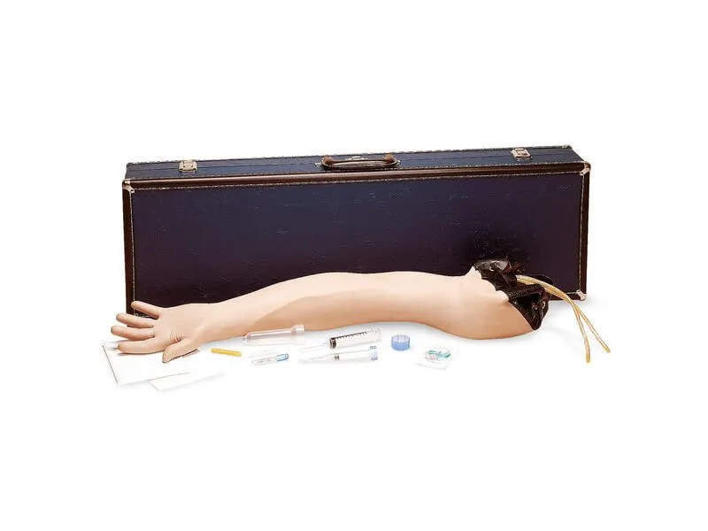 Внутримышечные инъекции не менее реалистичны. Подушка из пеноматериала имитирует мышечную ткань, а границы определяются по естественным костным ориентирам. Тренажер для отработки инъекций имеет заменяемые кожу и вены.