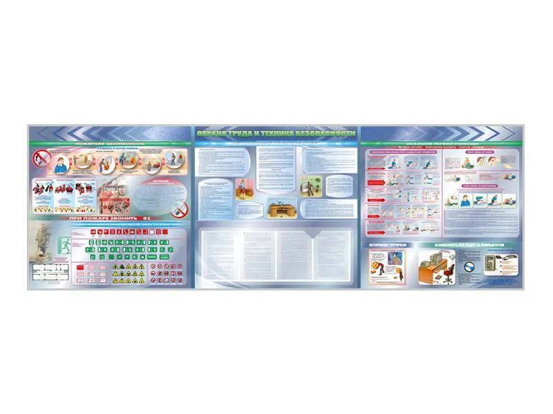 Стенд охраны труда на предприятиях позволяет сотрудникам предприятий ознакомиться с информацией по пожарной безопасности, применению знаков безопасности, средствам пожаротушения и методам оказания первой помощи. Это поможет сформировать у сотрудников предприятий осознанное отношение к проблемам охраны труда.