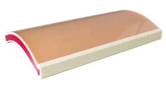 Модуль имитирует участок кожи с подкожно-жировой клетчаткой, мышечным слоем, зафиксированный на жестком основании-подставке. Модуль предназначен для отработки различных хирургических навыков: