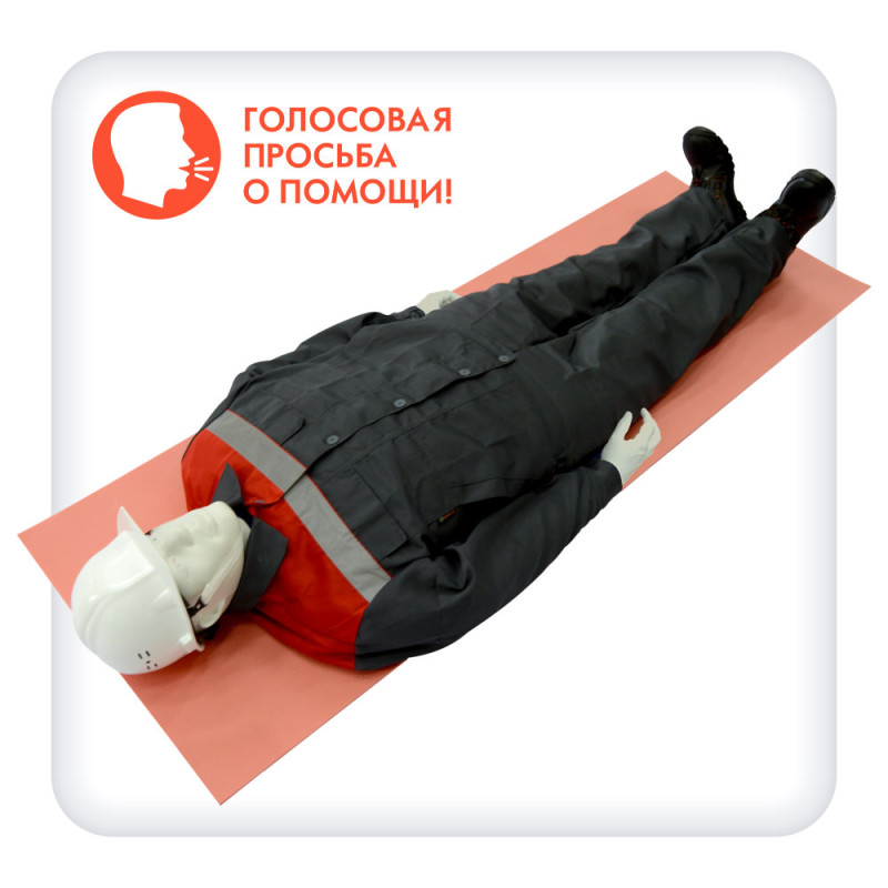 Комплектация включает комбинезон, ботинки, каску и пенополиэтиленовый коврик, что позволяет моделировать действия с экипировкой пострадавшего.