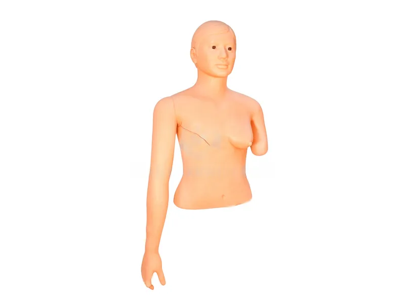 Медицинский тренажер для обучения навыкам оказания первой помощи при переломах представляет собой манекен в виде женщины с ампутированными грудью и рукой.