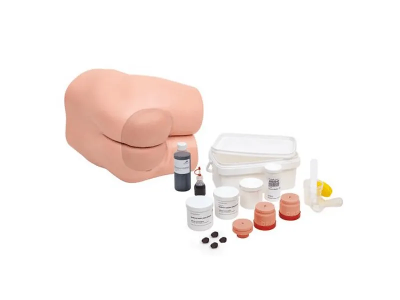 Возможна процедура обтирания губкой с имитацией твердого и растворимого стула. Благодаря быстрой и простой смене настроек (< 1 мин) возможно оперативное обучение различным методикам.Кроме того, данный медицинский тренажер содержит 2 3D (трехмерные) анатомо-дидактические модели геморроя, позволяющие вывести Вашу практику на новый уровень! 3D-модели крепятся к пособию с помощью магнита, поэтому пособие может передаваться от студента к студенту во время урока.