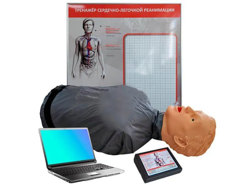 Робот-тренажер для обучения СЛР обеспечивает интерактивный опыт отработки сердечно-легочной реанимации. Он оснащен персональным компьютером с обучающей анимационной программой, которая позволяет контролировать и оценивать действия обучаемого.